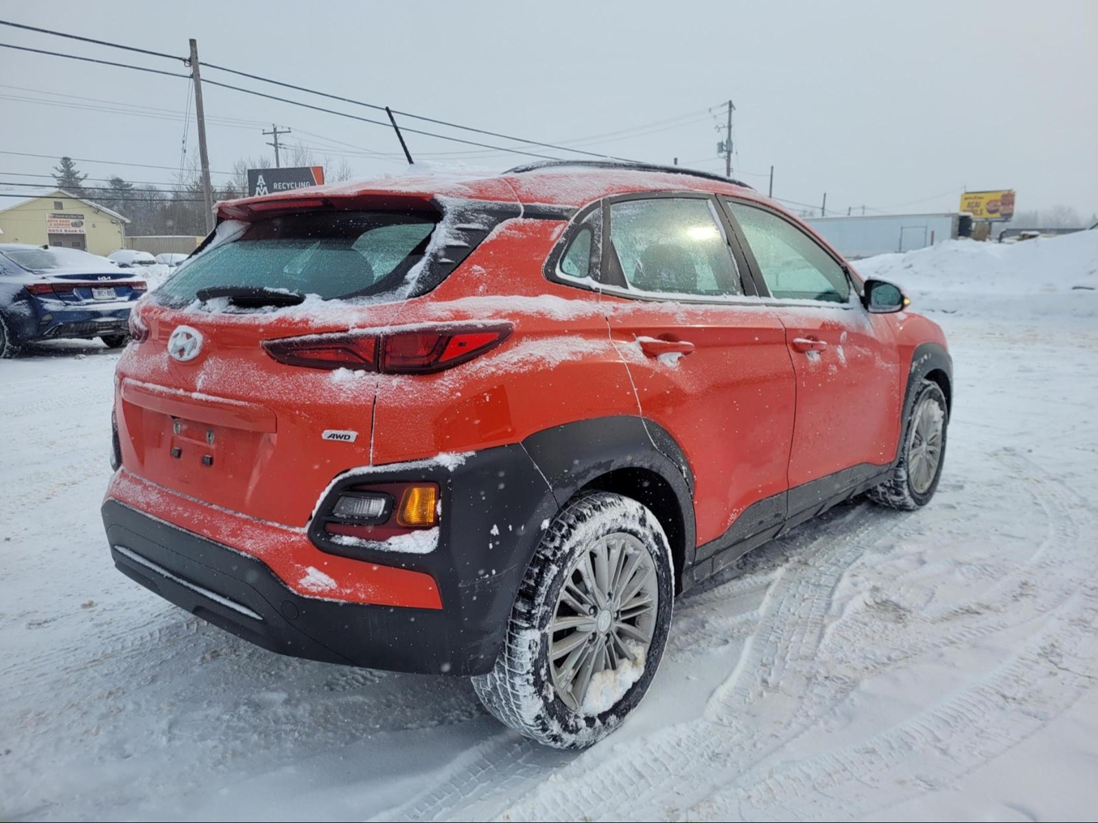 2020 Hyundai Kona in Sunset Orange. The vehicle has run around 206,162km and runs and drives okay with no check engine light. The vehicle is sold as is and may require additional work. We do not perform mechanical checks or provide safety inspections.