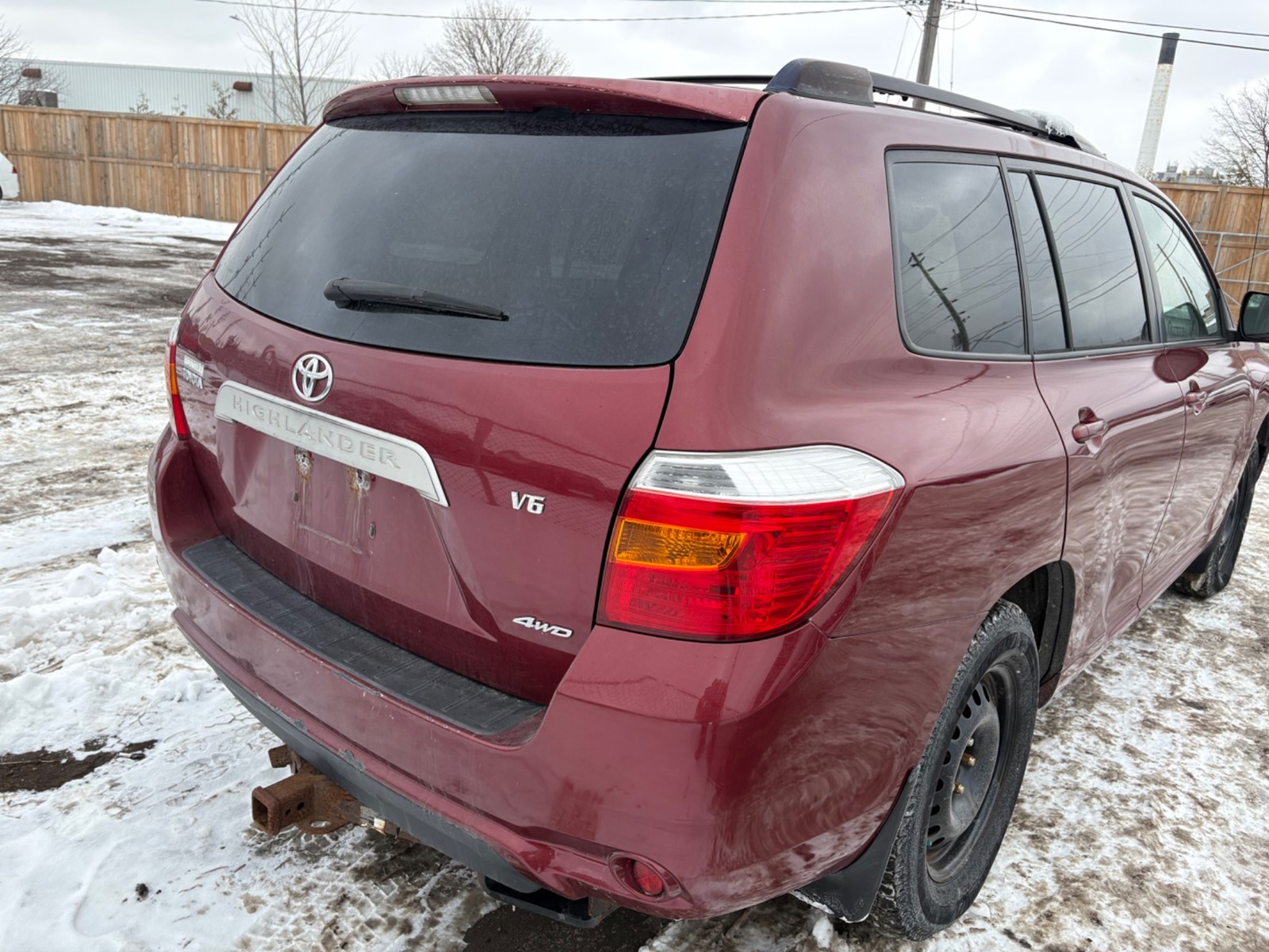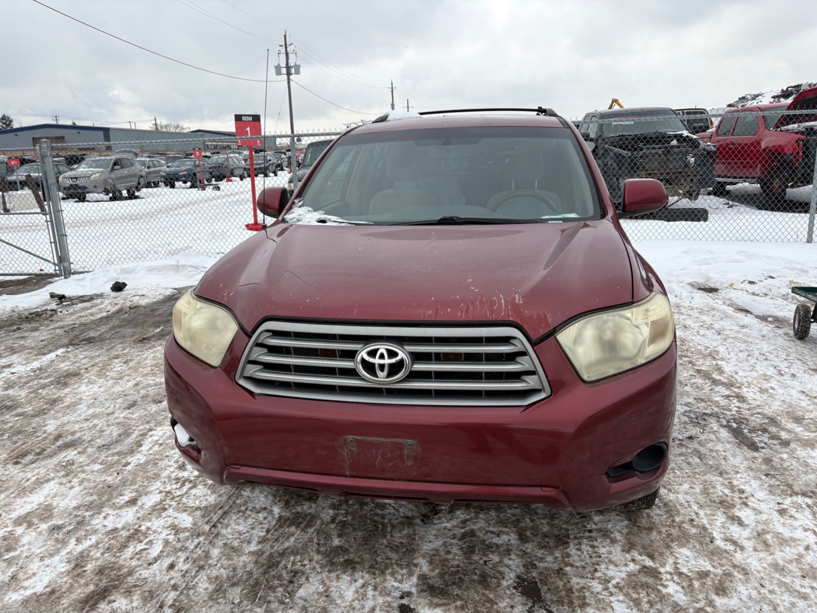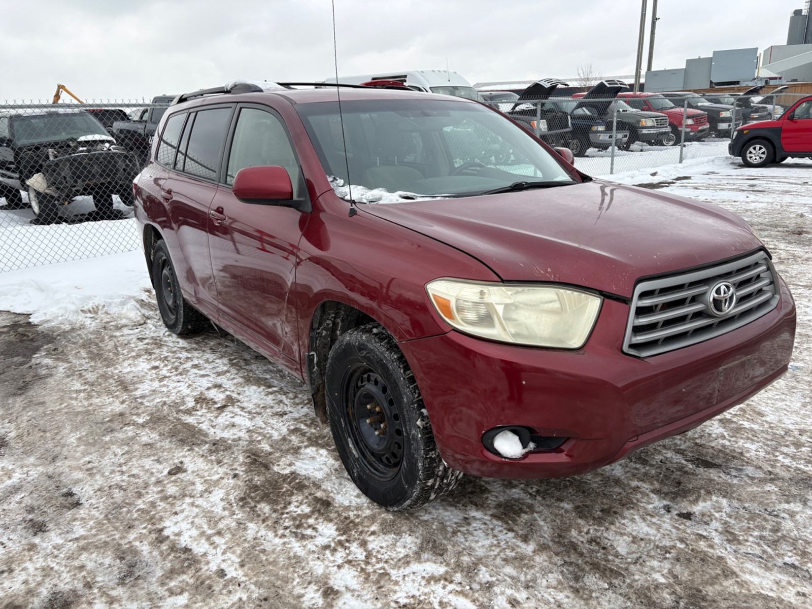 2008 Toyota Highlander. Red exterior, beige cloth interior. The vehicle has odometer is 313,623 km and runs and drives well with no check engine light. There is a cracked windshield that will need to be replaced. The vehicle is sold as is and may require additional work. We do not perform mechanical checks or provide safety inspections.