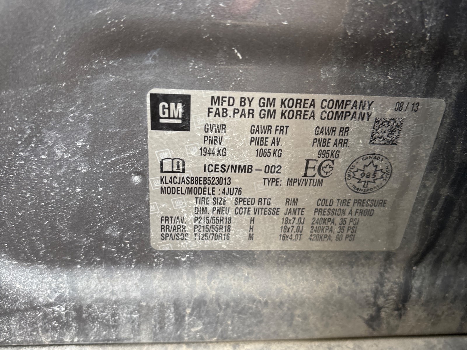 VIN: KL4CJASB8EB523013