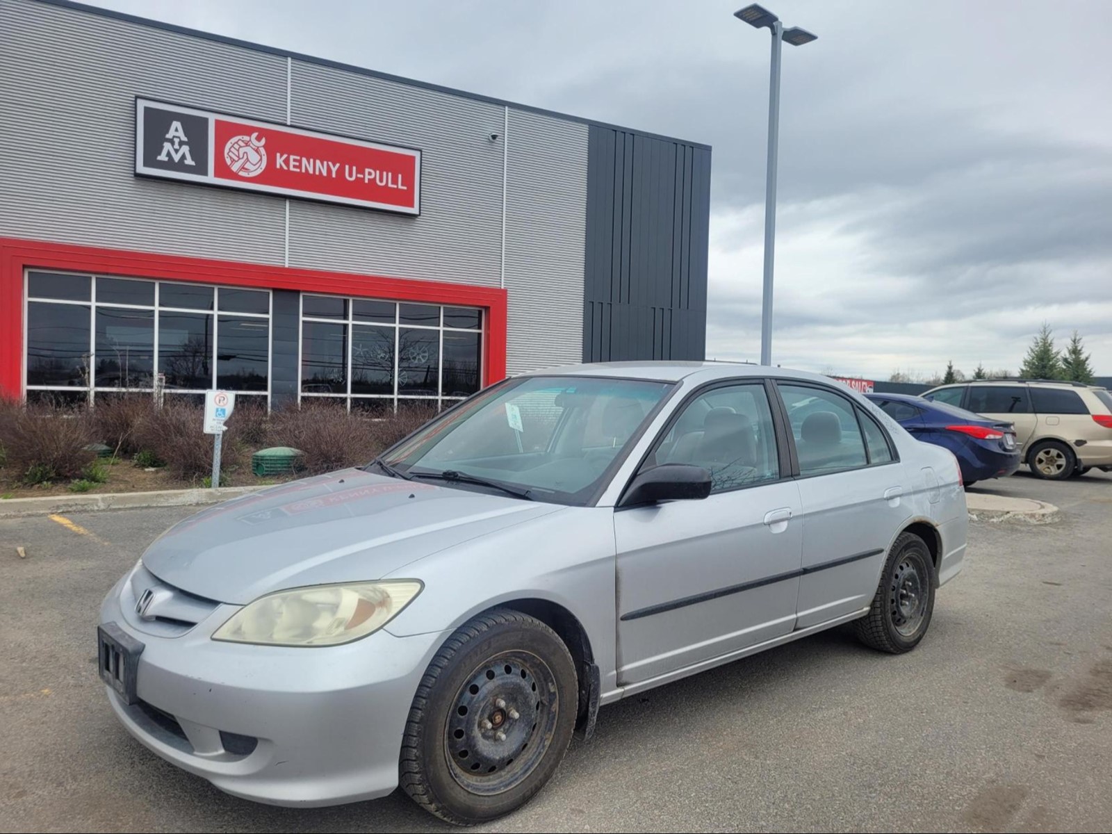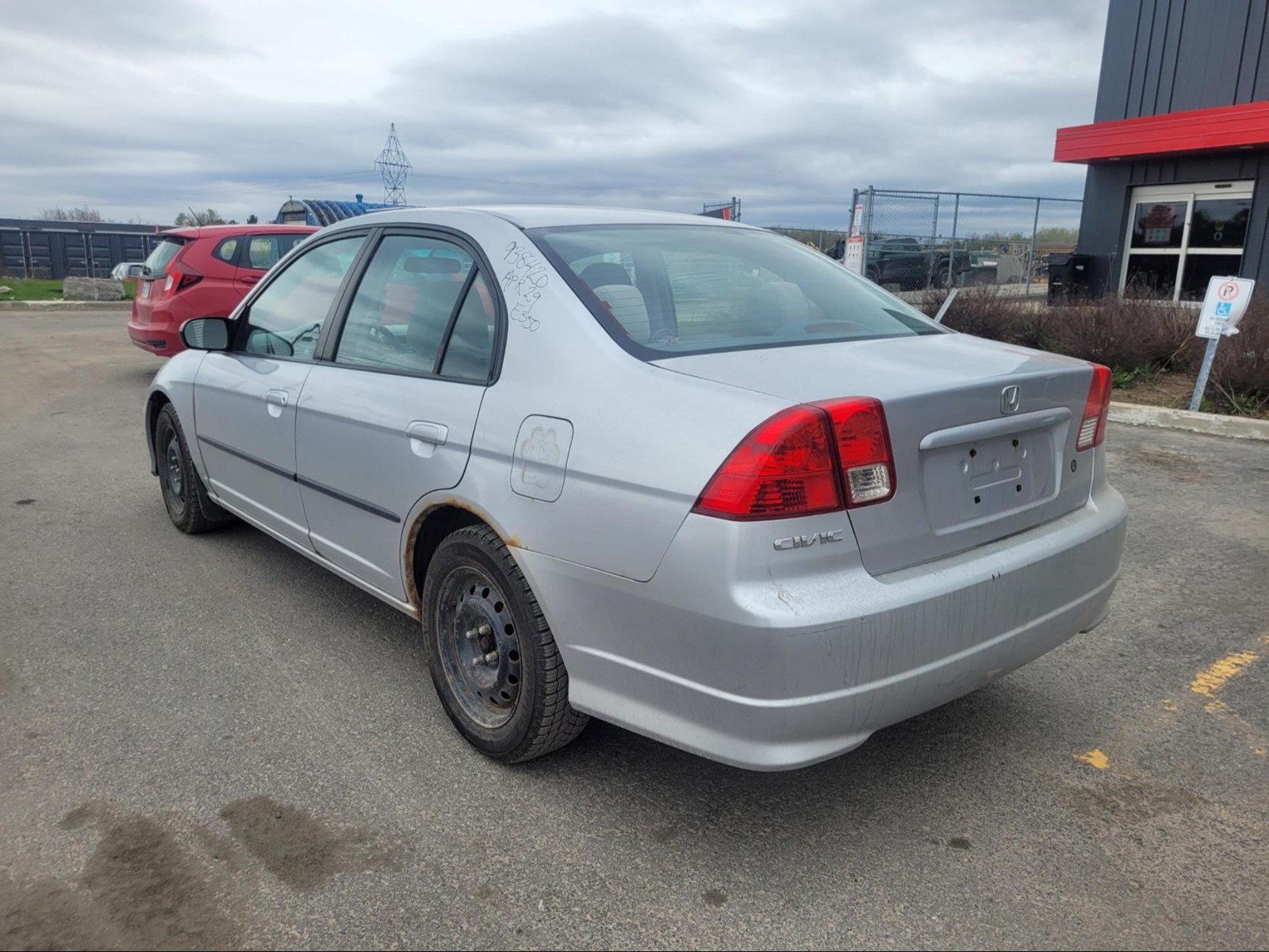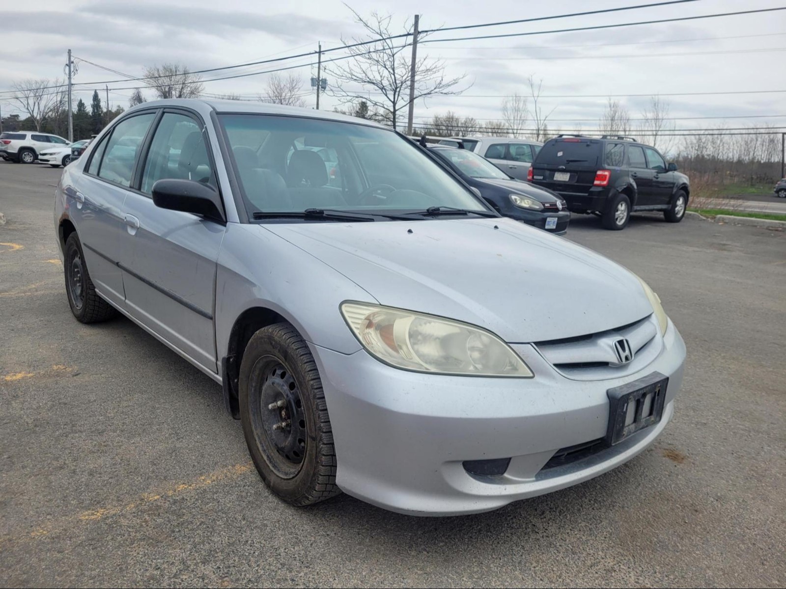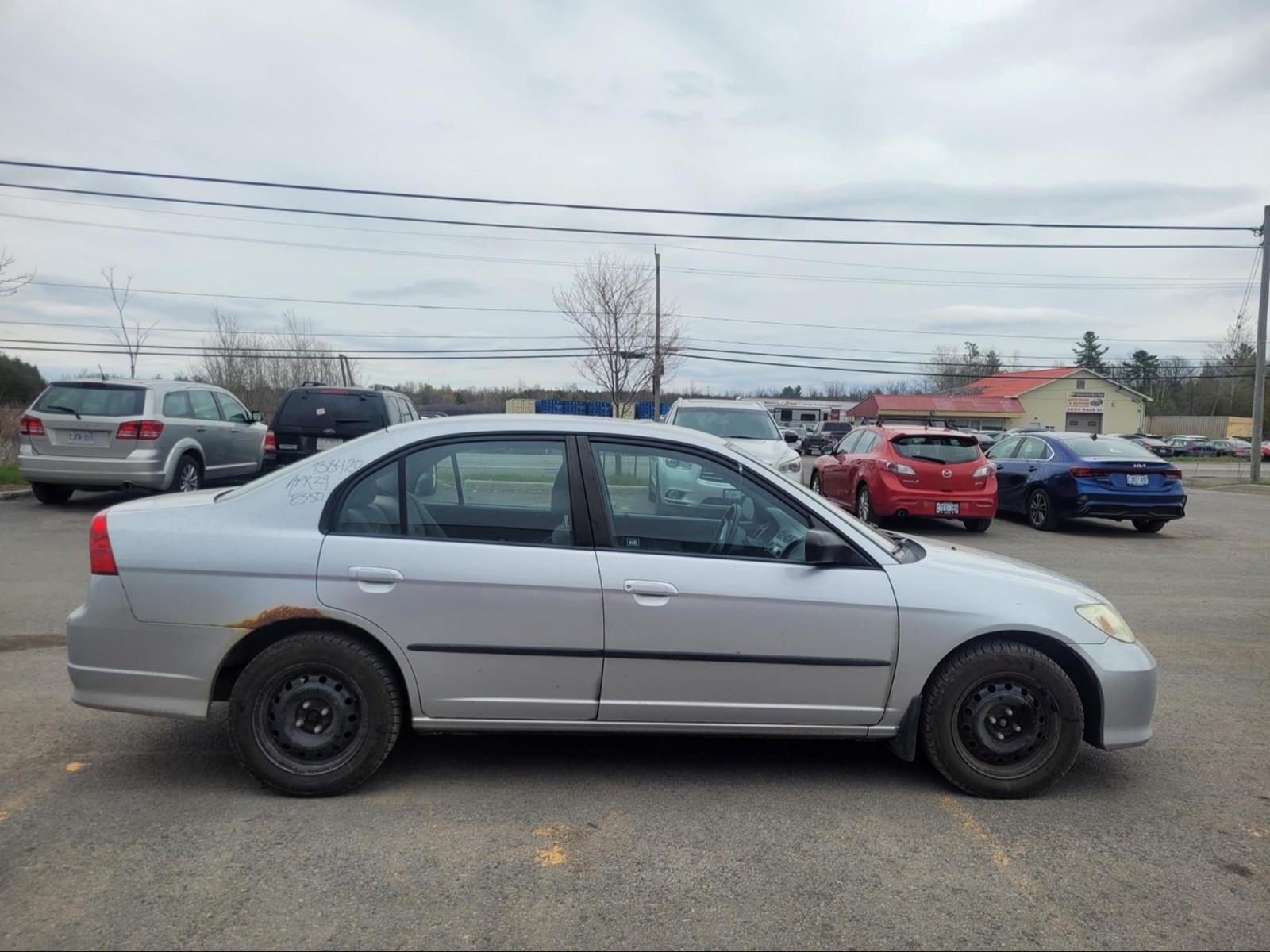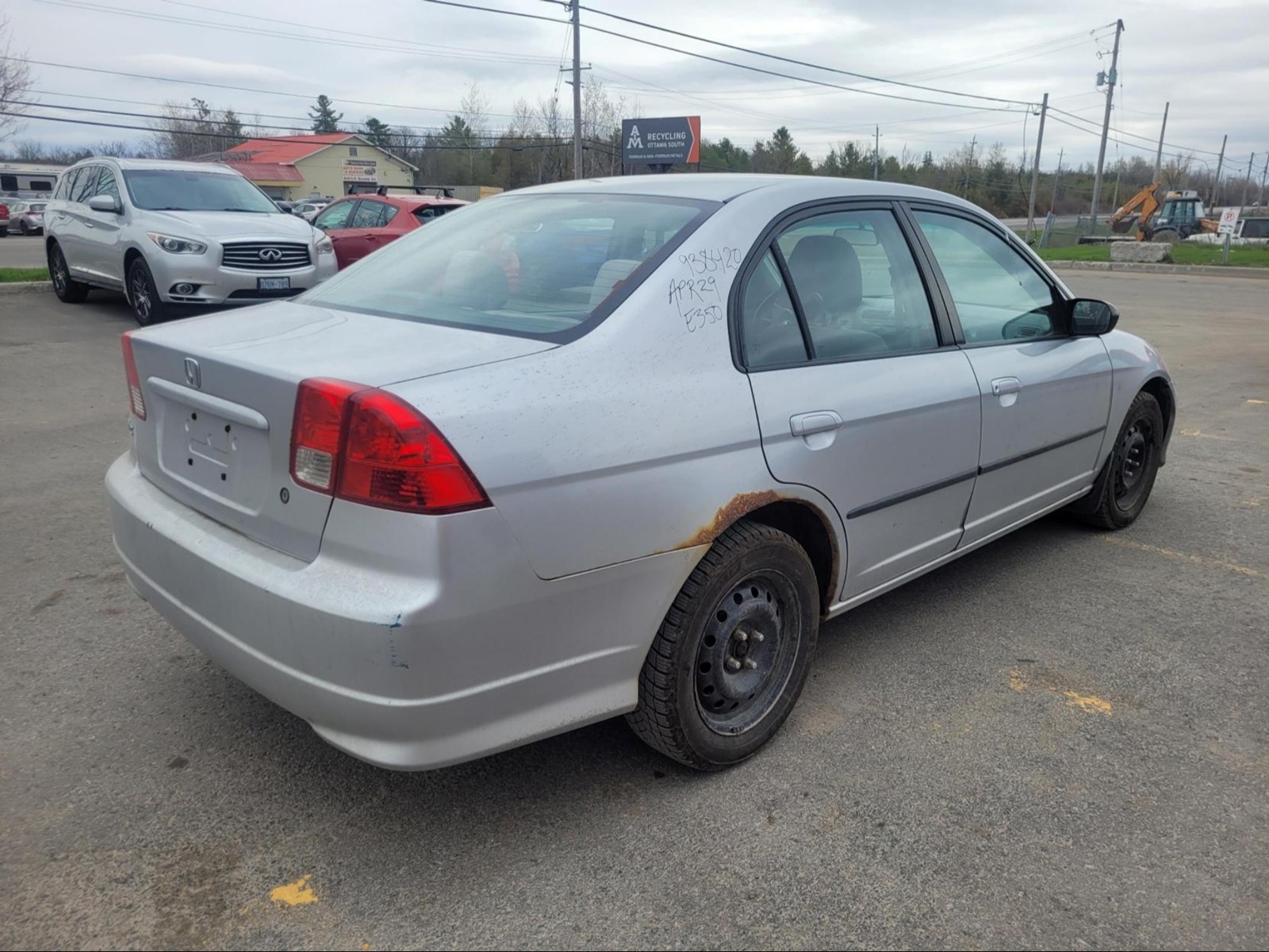 2004 Honda Civic in Satin Silver metallic (Manual). The vehicle has 165,534km. The vehicle runs and drives ok. Check engine light on. Multiple rust spots around the vehicle. We don't perform any mechanical/safety inspections. The vehicle is sold as is and might need some work.